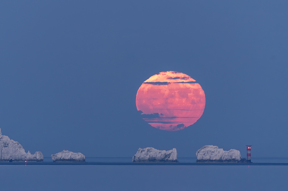 (Contains 5 photos) A few shots of the recent Strawberry Super full moon, rising above the Needles on the Isle of Wight. |